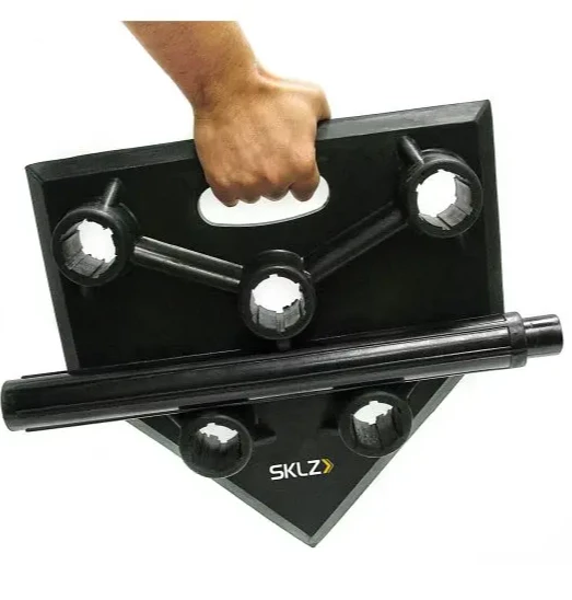 SKLZ 5-Position Batting Tee is the baseball training tool to take players to the next level. Get a leg up on the competition this season with the SKLZ 5-Position Batting Tee by perfecting your batting skills. It is an excellent tool for teaching yourself how to position correctly for outside, middle and inside pitches. The SKLZ tee is simple to use and can quickly be adjusted from as low as 20″ to as high as 34″. Whether you are using it at home or taking it somewhere to practice, you will appreciate the built-in handle and stem straps that make it easy to carry. In addition, the stem on this baseball training tee stores in the center of the plate for easy and compact storage. Every piece is created with premium rubber materials for long-lasting reliability. This batting tee will last hit after hit while you are finding that all-mighty sweet spot. Start practicing today with SKLZ 5-Position Batting Tee.